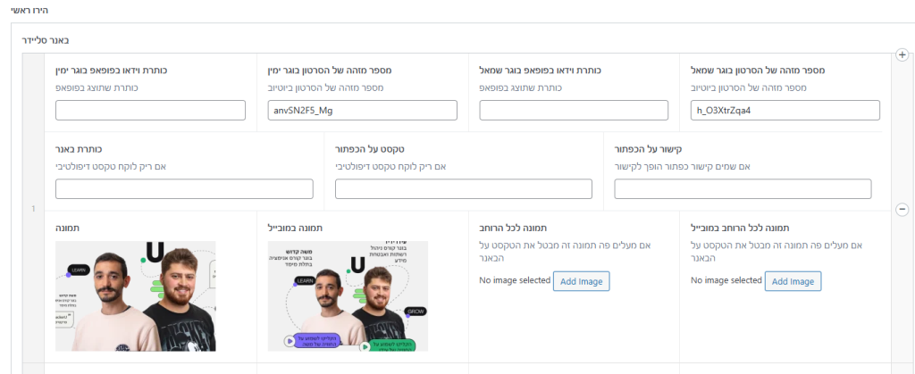 אם רוצים שיהיה סליידר פשוט מוסיפים עוד באנרים בלחיצת כפתור "הוסף חדש"