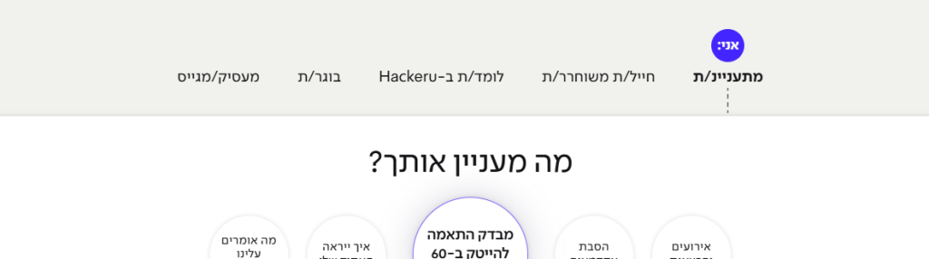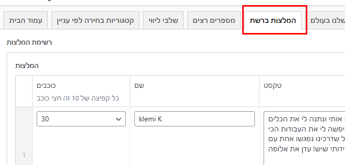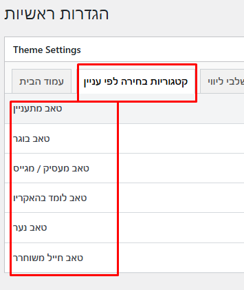 ניתן לפתוח בלחיצץ על הטאב. כל טאב אחראי על התוכן שלו