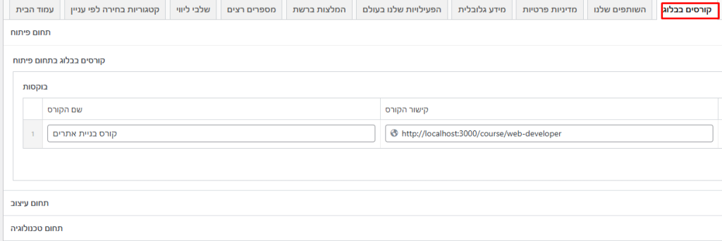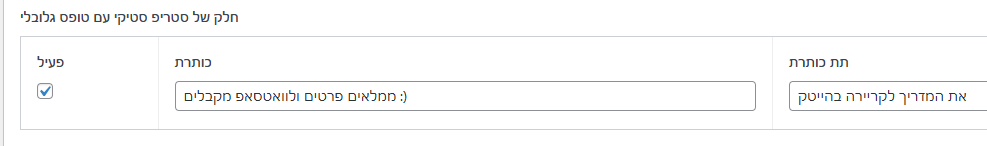 החלק הזה גלובלי זה אומר זהוא נמצא בכמה מקומות באתר איפה שיש את זה. למשל בקורסים הוא גם מופיע אבל בקורסים יש אופציה לדרוס את זה בעריכה של הקורסים.