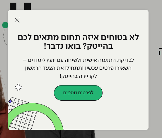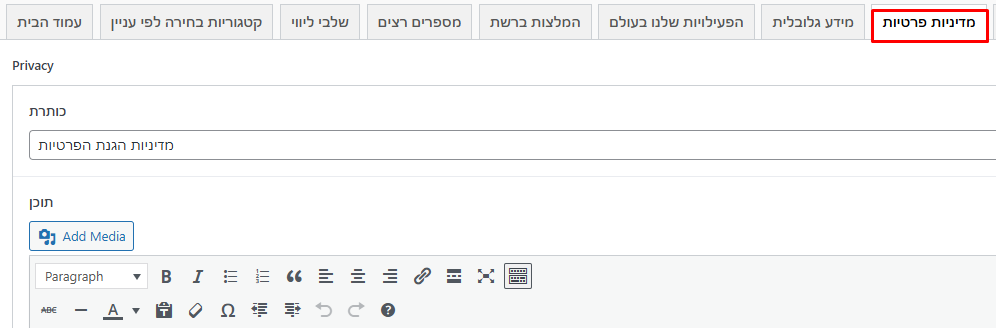 בכל מקום איפה שיש לחיצה על "מדיניות הגנת הפרטיות נפתח פופאפ עם התוכן הזה