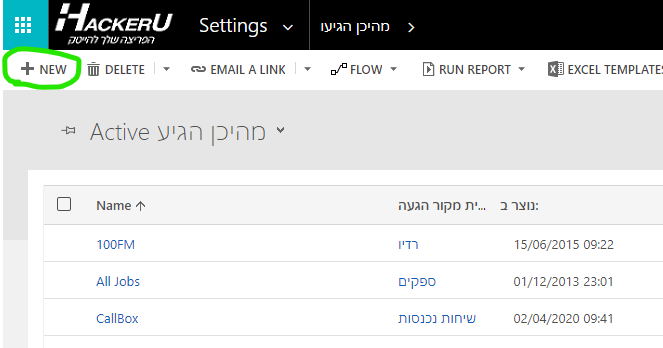 במסך הבא לוחצים על NEW