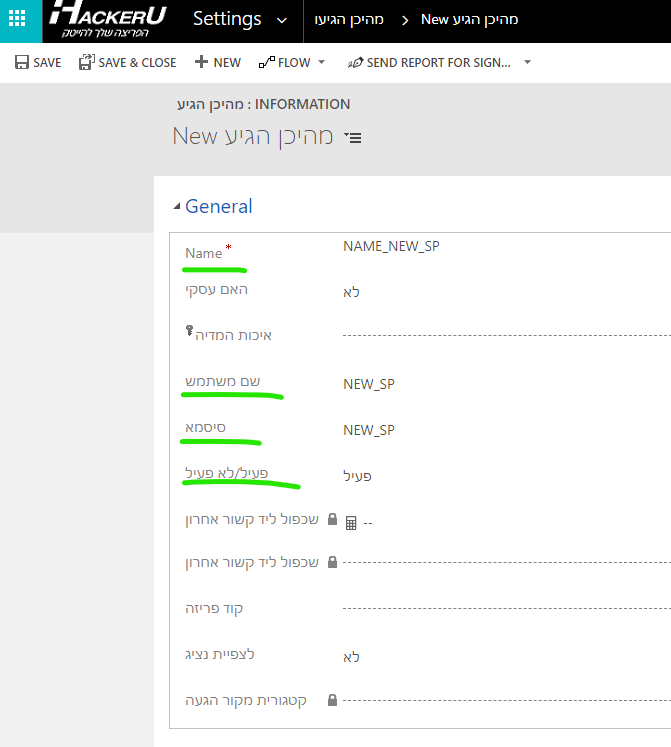 שם משתמש וסיסמה זה ה-SP שלנו ב-API הוא חייב להיות באנגלית ובלי רווחים, NAME זה מה שרואים בעמודה ב-CRM מהיכן הגיעה
