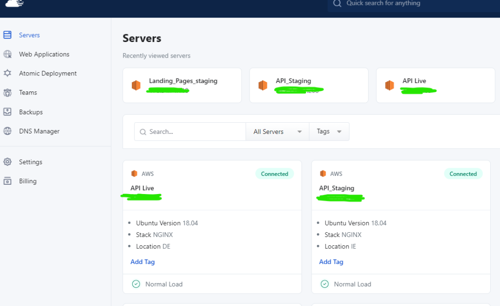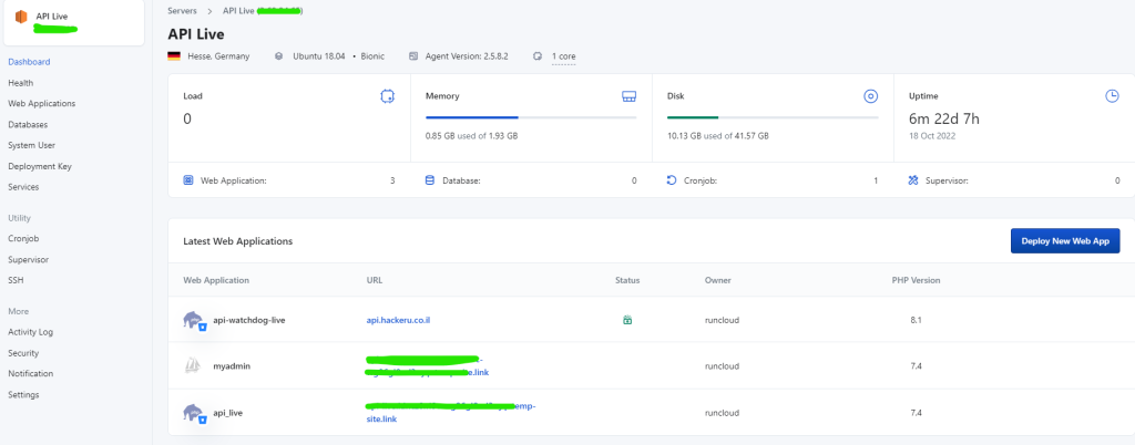 https://runcloud.io/ אחרי התחברות ניתן לשראות את השרתים שלנו.