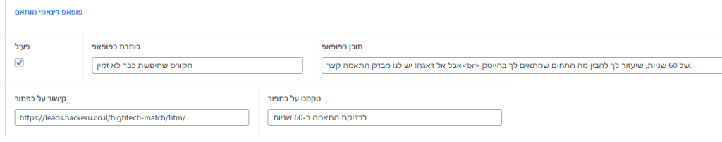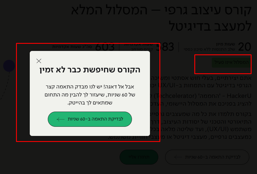 אם הקורס לא זמין ורוצים להוסיף פופאפ על כך