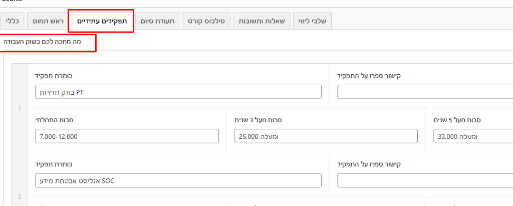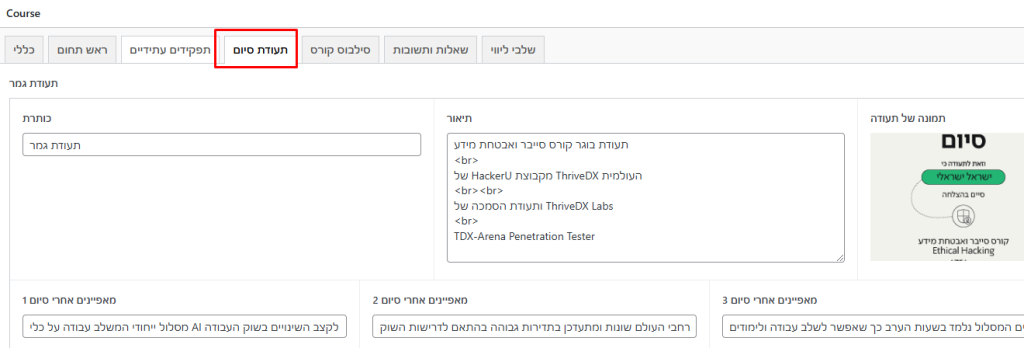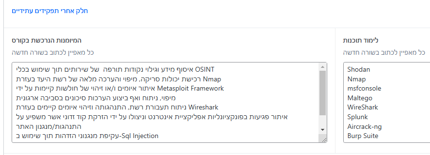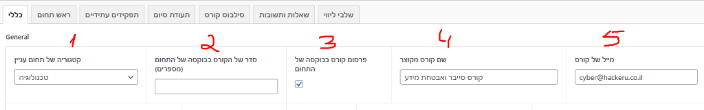 4 שם קורס מקוצר נמצא בכמה מקומות באתר כמו טפסים, לינקים בפוטר, בתפריט