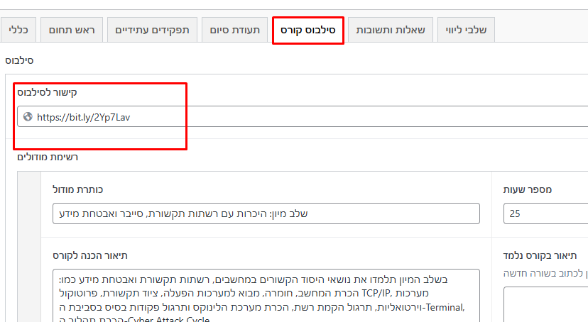 קישור הסילבוס של ביטלי משמש בכל מיני מקומות באתר ובטפסים