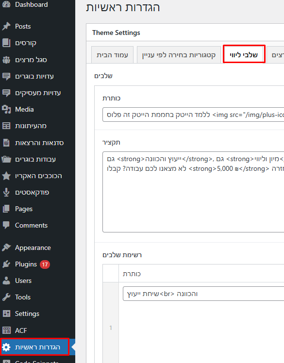 בהגדרות ראשיות יש שלבי ליווי גלובלי שמתמשים בכמה מקומות באתר. אם רוצים בקורסים לשנות את זה אז ניתן להוסים שלבים חדשים וזה הדרוס את הגלובלי
