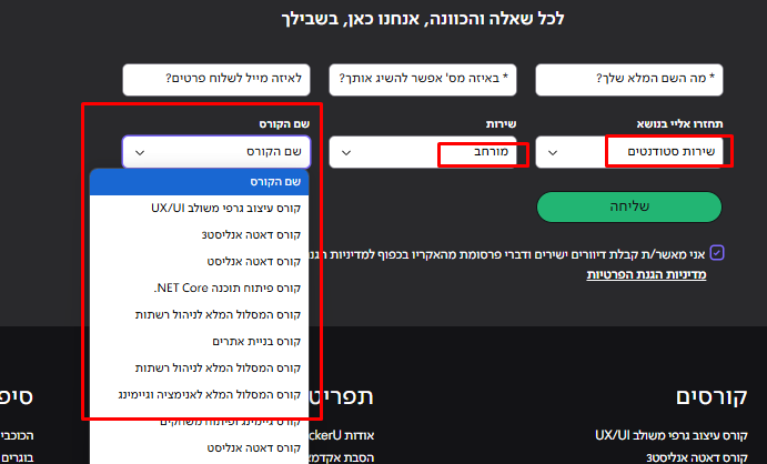 5 משמם לשליחת מייל לפי קורס בכמה מהטפסים