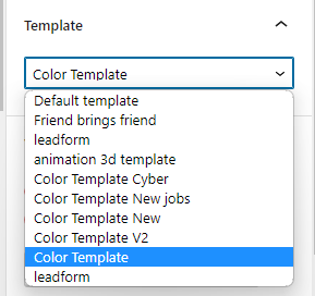 באו ניצור דף חדש לדוגמה. בהגדרות של התבנית בוחרים COLOR TEMPLATE זו תבנית הפופולרית שלנו שעובדת עם FLEXIBLE CONTENT של ACF