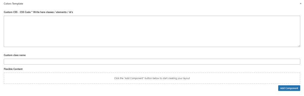 את הקומפוננטות עם השדות שאנחנו רואים בוורדפרס נמשכים מכאן כי בחרנו תבנית COLOR TEMPLATE.