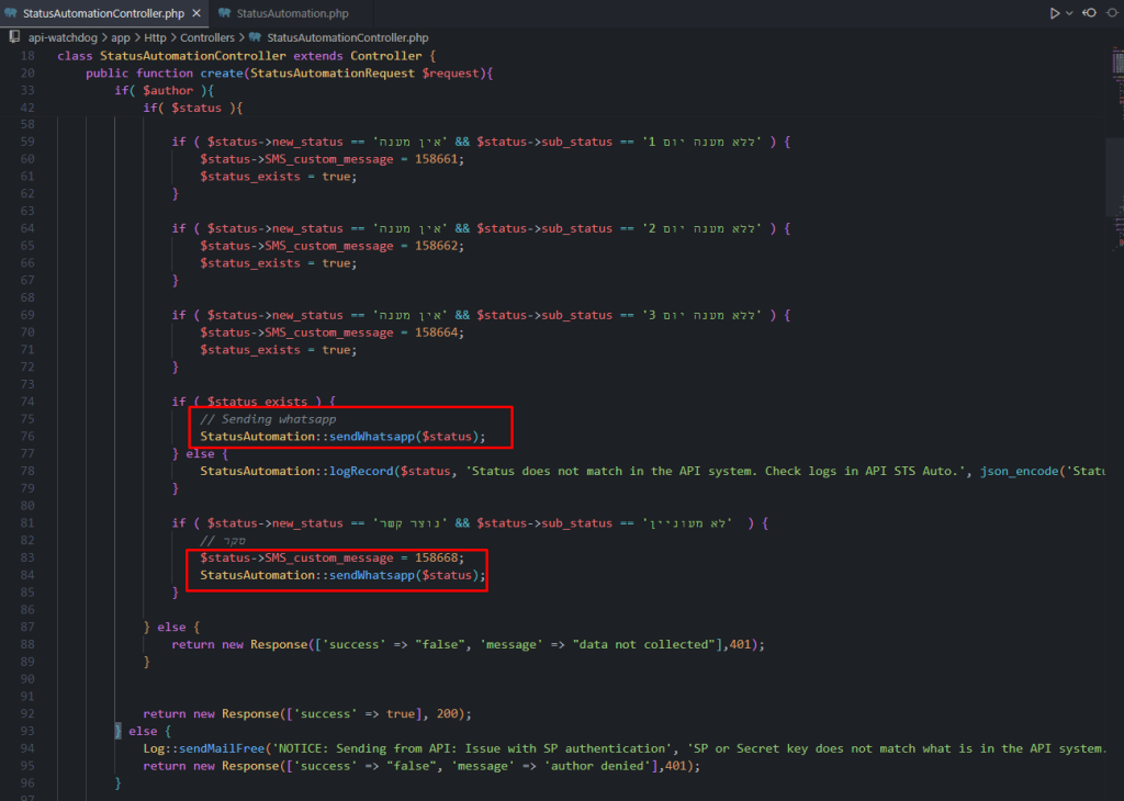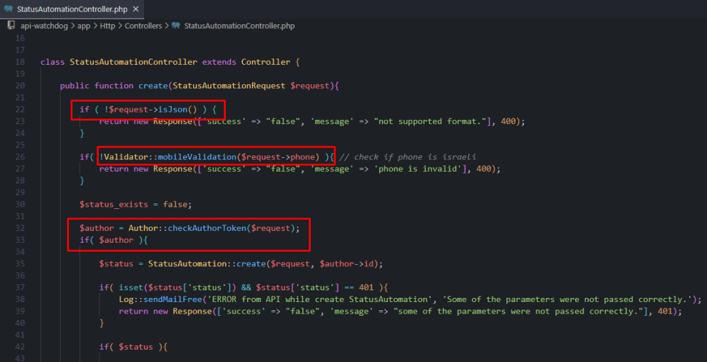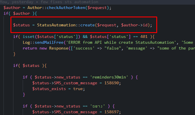 בקובץ StatusAutomationController.php בהתחלה עוד לפני שבקשה נקלתת במערכת יש לנו כמה בדיקות שהמערכת עושה.