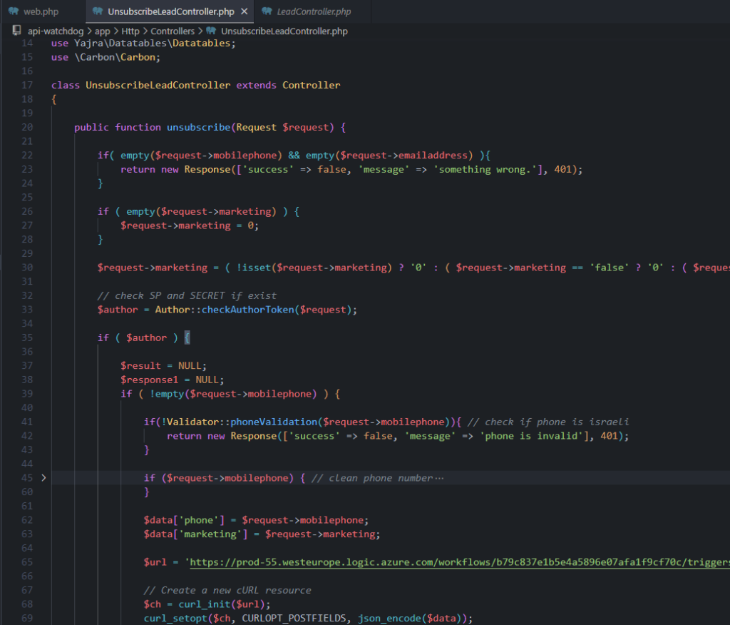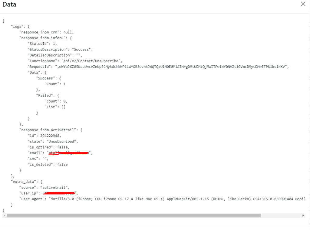 דוגמה ל-RESPONSE ממערכות. ניתן לראות את זה בלשונית של unsubscribe ב-API.